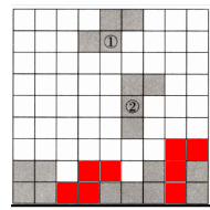 1. 通过平移把网格中最下面的一层铺满,进行整行消除,请在方格纸中画出平移后的图形,并说说你是怎么做的。
