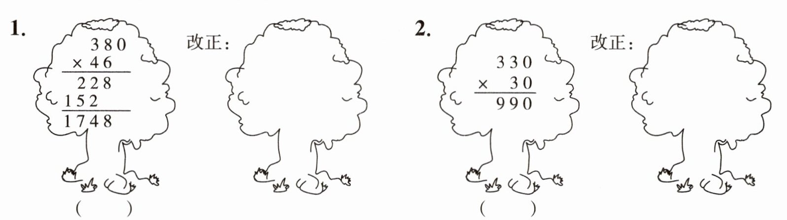 2. 妙妙在计算一道乘数末尾只有一个 0 的乘法算式时,忘记在积的末尾添上 0,结果比正确的积少 315,正确的积是多少?