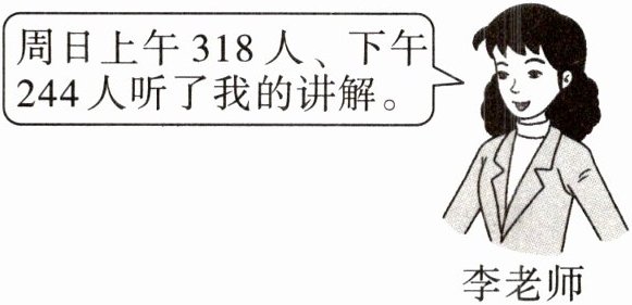 2. 少年宫开展科学展览活动,周六一天李老师给 456 人做了讲解。这两天李老师共给多少人做了讲解?