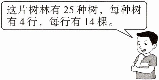 答:这片树林一共有1400棵树。