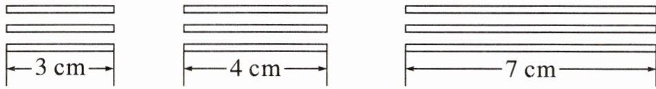 3 cm、3 cm、3 cm,4 cm、4 cm、4 cm,7 cm、7 cm、7 cm