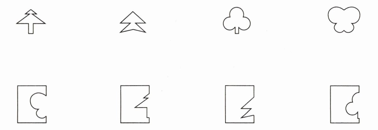 三、下面的图形分别是从哪张对折的纸上剪下来的?连一连。