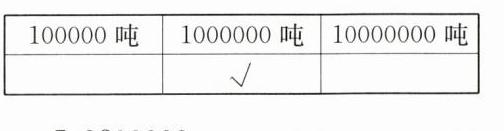 4. 10袋相同的大米总重1吨。照这样计算,10000000袋这样的大米重多少吨?(在合适的答案下面画“√”)