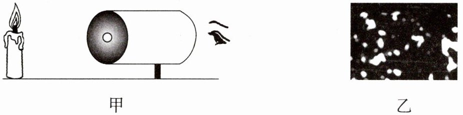 18. 某兴趣小组在空易拉罐的底部中央戳一个小圆孔,将顶部剪去后,蒙上一层塑料薄膜,制作成一个简易针孔照相机. 如图甲所示,将其水平放置,在左侧固定一支点燃的蜡烛,可在塑料薄膜上看到烛焰的像.