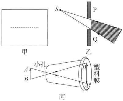 (2)如图乙所示,人眼处于S点位置,P、Q为不透光的挡板,试作出人眼能看到的挡板右侧的范围(用阴影线画出).