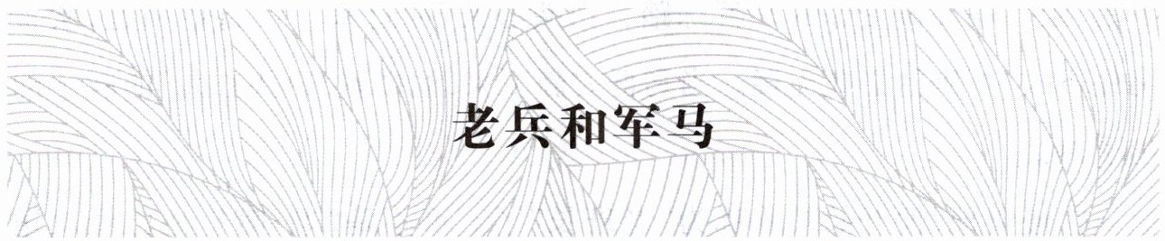 ⑧他入伍的第八年,裁军。因军事装备越来越现代化,军马场接到了解散的命令,所有的军马都要被处理。“白头心儿”被牵走时,眼望着他,四蹄后撑,一动不动。他轻轻拍着它的脖子耳语:“白头心儿啊,乖乖跟人家走吧,我不会忘了你的……”不知不觉,泪水已淌在这位二十六岁“老兵”的脸颊上。