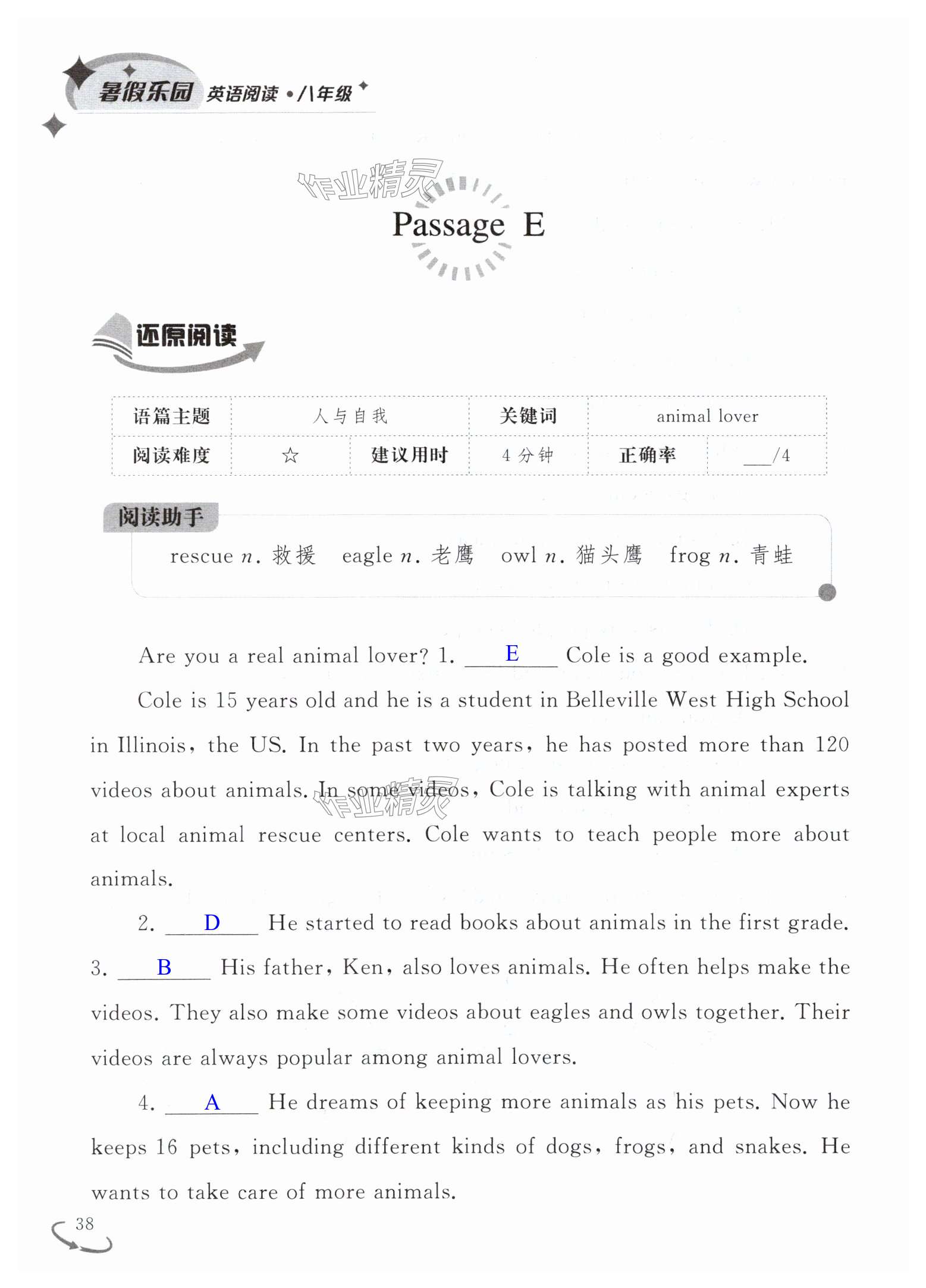 注:目前有些书本章节名称可能整理的还不是很完善,但都是按照顺序排列的,请同学们按照顺序仔细查找。练习册 2025年暑假乐园辽宁师范大学出版社八年级英语阅读 答案主要是用来给同学们做完题方便对答案用的,请勿直接抄袭。