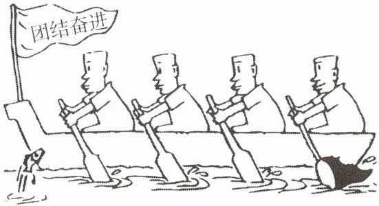 讽刺了社会上一些虚伪的人,他们打着团结奋进的幌子,实际上暗中为自己谋私利。