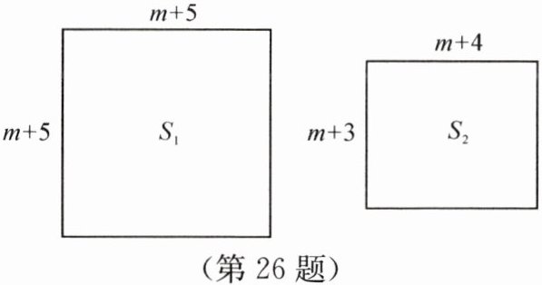 26. 如图,正方形的边长为$m+5$,长方形的长为$m+4$,宽为$m+3$,$m$为正整数,正方形的面积记为$S_{1}$,长方形的面积记为$S_{2}$.