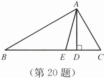 20. 如图所示,已知 $ \triangle ABC $ 中,$ AD \perp BC $,垂足为 $ D $,$ AE $ 为 $ \angle BAC $ 的平分线,且 $ \angle B = 36^\circ $,$ \angle C = 66^\circ $.求 $ \angle DAE $ 的度数.