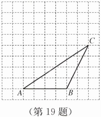 19. 如图所示,$ \triangle ABC $ 的顶点都在方格纸的格点上.将 $ \triangle ABC $ 向左平移 $ 2 $ 格,再向上平移 $ 4 $ 格.请在图中画出平移后的 $ \triangle A'B'C' $,再在图中画出 $ \triangle A'B'C' $ 的高 $ C'D' $.
