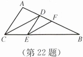 22. 如图所示,已知CD平分$ \angle ACB $,$ AC // DE $,$ CD // EF $,求证:EF平分$ \angle DEB $.