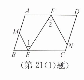 已知:如图,在四边形 ABCD 中,ABCD,$∠B= ∠D$,点 E,F 分别在边 BC,AD 上,EM 平分$∠BEF$交 AB 于点 M,FN 平分$∠DFE$交 CD 于点 N.