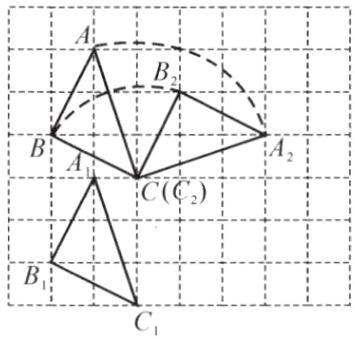 ②将$△ABC$绕点 C 顺时针旋转 90 度得到$△A_{2}B_{2}C_{2}$,画出$△A_{2}B_{2}C_{2}$.