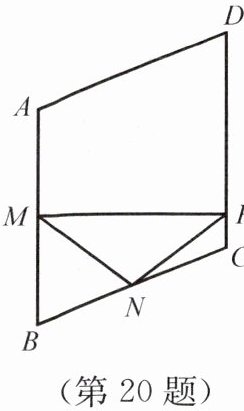 20. 如图所示,已知在菱形$ABCD$中,$M$、$N分别是边AB$、$BC$的中点,$MP⊥AB交CD于点P$,连接$NM$、$NP$。