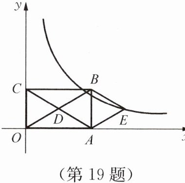 19. 如图所示,在平面直角坐标系中,矩形$OABC的对角线OB$、$AC相交于点D$,且$BE// AC$,$AE// OB$。