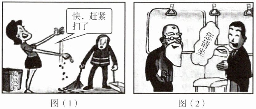 (1)在上述社会现象中,你认为哪幅图的行为是缺乏羞耻之心的行为?哪幅图的行为能传递社会正能量?