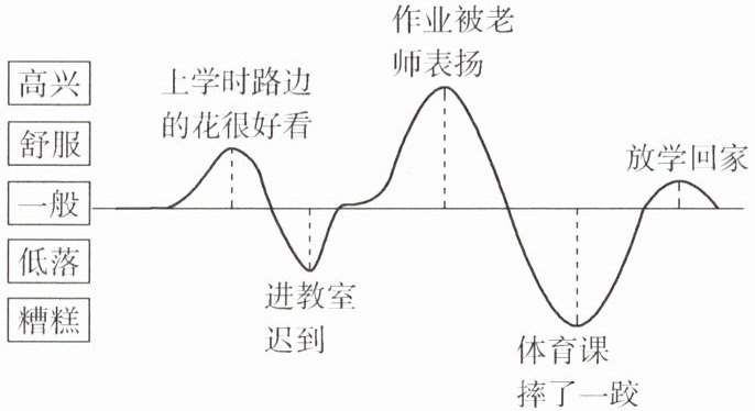 8. 下图是小明同学的情绪曲线,根据曲线。以下对“小明的情绪”分析正确的是 ( )