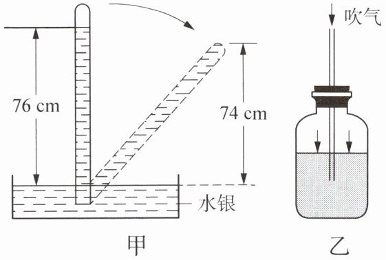 A.图甲中玻璃管倾斜时,外界大气压强等于74cm高水银柱产生的压强