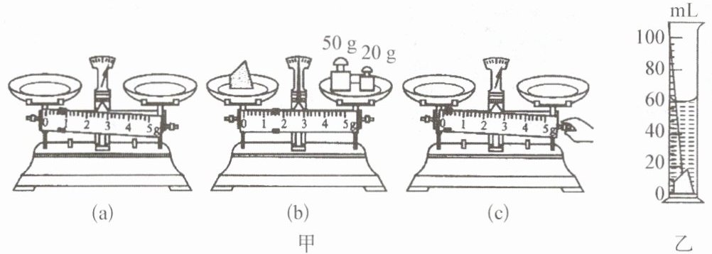 (2)图甲为用天平测量小石块质量过程的几个情景,合理的顺序是____(填字母)。