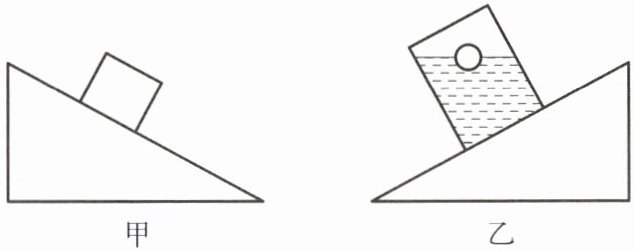 14. 画出:(1)图甲中斜面上的物体所受重力及物体对斜面压力的示意图;(2)图乙中,静止在水面上的小球所受力的示意图。