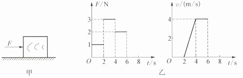 6. 如图甲所示,水平地面上的一物块,受到方向不变的水平推力 F 的作用,F 的大小与时间 t 的关系以及物体的速度 v 与时间 t 的关系如图乙所示.以下说法正确的是( )