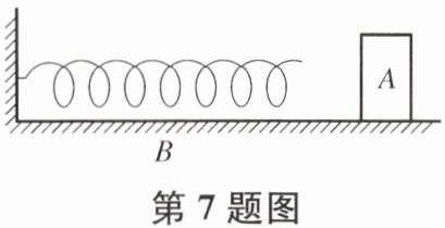7. 如图所示,小物块 A 和弹簧放在光滑的水平面上,弹簧的左端固定于竖直墙面上,向左移动物块 A 并压缩弹簧至 B 处,静止时释放物块 A,此后物块的运动是( )