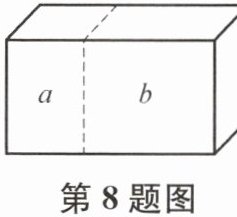 8. 一均匀长方体放在水平地面上,对地面的压强为$ p_1;$若把长方体沿图示的虚线方向竖直切成 a、b 两部分,使 b 的体积是 a 的两倍,取走 a 后,剩余部分 b 对地面的压强为$ p_2.$则( )