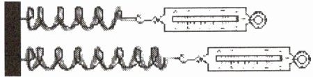 ② 如图所示,固定弹簧的一端,用大小相等的力拉弹簧,测出两根弹簧的