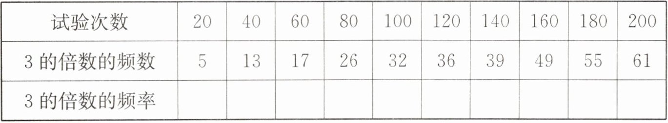 (3)从试验数据看,从盒中摸出一张卡片是3的倍数的概率估计是( );