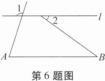 6. (陕西中考)如图,$l// AB,∠A= 2∠B$.若$∠1= 108^{\circ }$,则$∠2$的度数为 (