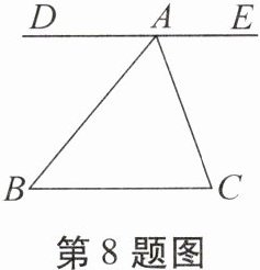 8. (呼和浩特中考)如图,在三角形ABC中,$∠B= 50^{\circ },∠C= 70^{\circ }$,直线DE经过点A,$∠DAB= 50^{\circ }$,则$∠EAC$的度数是 (