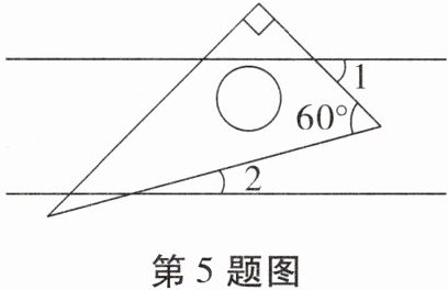 5. (随州中考)如图,将一个含有$60^{\circ }$角的直角三角尺放置在两条平行线上.若$∠1= 45^{\circ }$,则$∠2$的度数为 (