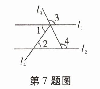 )如图,已知直线$l_{1},l_{2},l_{3},l_{4}$.若$∠1= ∠2$,则$∠3= ∠4$.
