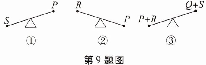 9. 四个小朋友玩跷跷板,他们的体重分别为$ P $,$ Q $,$ R $,$ S $,如图所示,则他们的体重的大小关系是 (