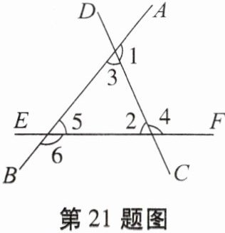 21. 如图,直线AB,CD,EF两两相交.