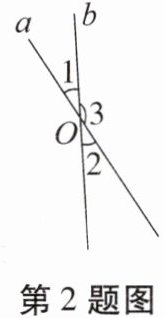 2. (安顺中考)如图,直线a,b相交于点O. 如果∠1+∠2= 60°,那么∠3的度数是(