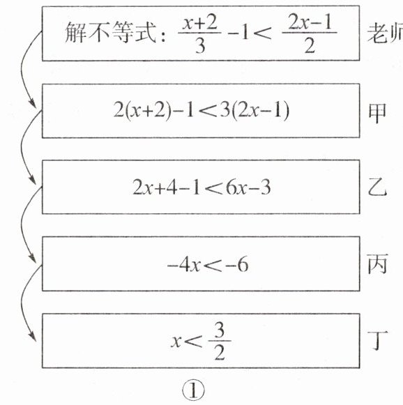 21. 老师设计了接力游戏,用合作的方式完成解不等式,规则是每人只能看到前一人给的式子,并进行一步计算,再将结果传递给下一人,最后完成求解过程.