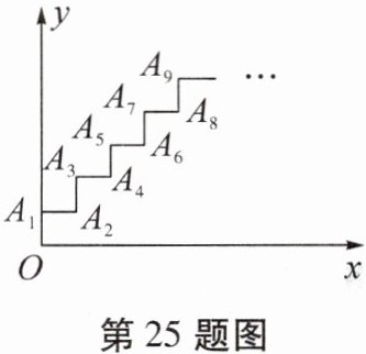 25. 以水平向右为$x$轴的正方向,竖直向上为$y$轴的正方向,建立平面直角坐标系$xOy$,一光点从原点$O$出发,按竖直向上、水平向右的方向依次不断移动,每次移动$1$个单位长度,其行走路线如图所示.