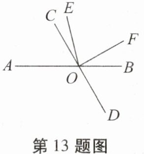 13. 如图,直线 $AB,CD$ 相交于点 $O,OF\perp OC$ 于点 $O,OE$ 平分 $\angle AOF$. 如果 $\angle COE= 15^{\circ}$,那么 $\angle BOD$ 的度数是 (