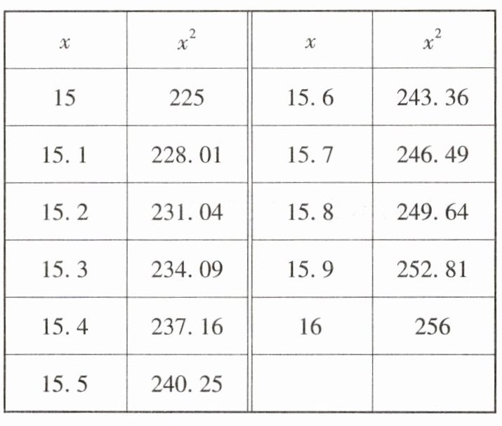 D.根据表中数据的变化趋势,可以推断出 $16.1^{2}$ 将比 256 增大 3.19