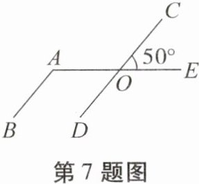 7. 如图,$AB// CD$,AE与CD相交于点O,$∠COE= 50^{\circ }$,则$∠A$的度数是 (