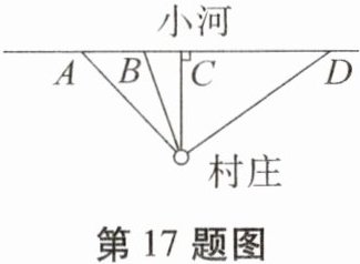 17. 在小河旁有一村庄,现要建一取水点,为使该村村民到河边取水最近,则取水点应建在点