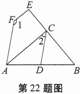 22. 如图,已知$AC// FE,∠1+∠2= 180^{\circ }.$