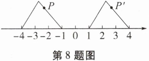 8. 如图,把一张三角形纸板的一边紧靠数轴平移,点P平移的距离$PP'$是(