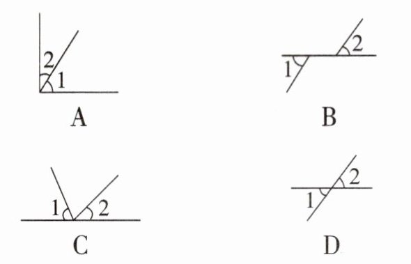 4. 下列选项中,$∠1和∠2$是对顶角的是(
