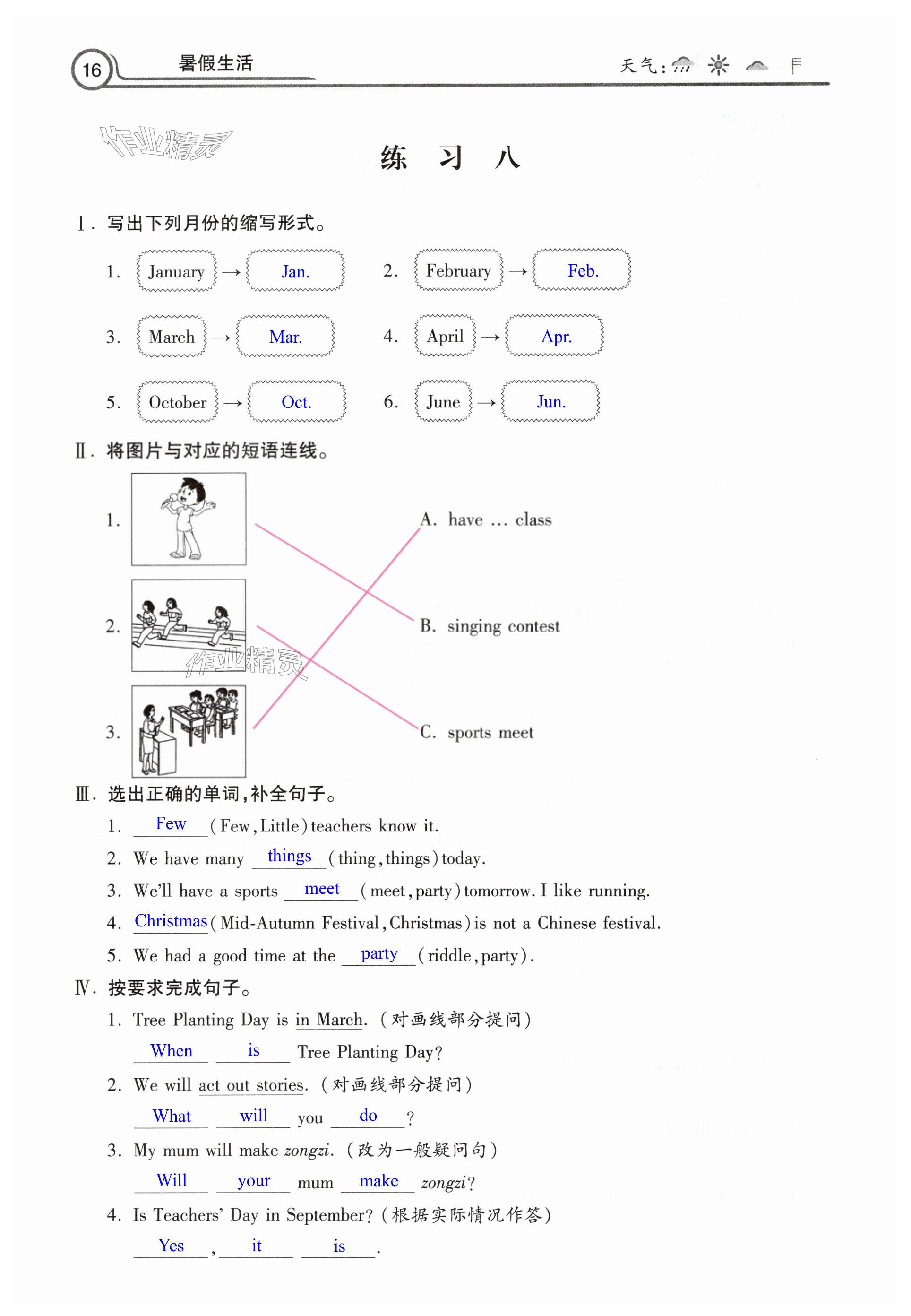 注:目前有些书本章节名称可能整理的还不是很完善,但都是按照顺序排列的,请同学们按照顺序仔细查找。练习册 2025年暑假生活河北美术出版社五年级英语 答案主要是用来给同学们做完题方便对答案用的,请勿直接抄袭。