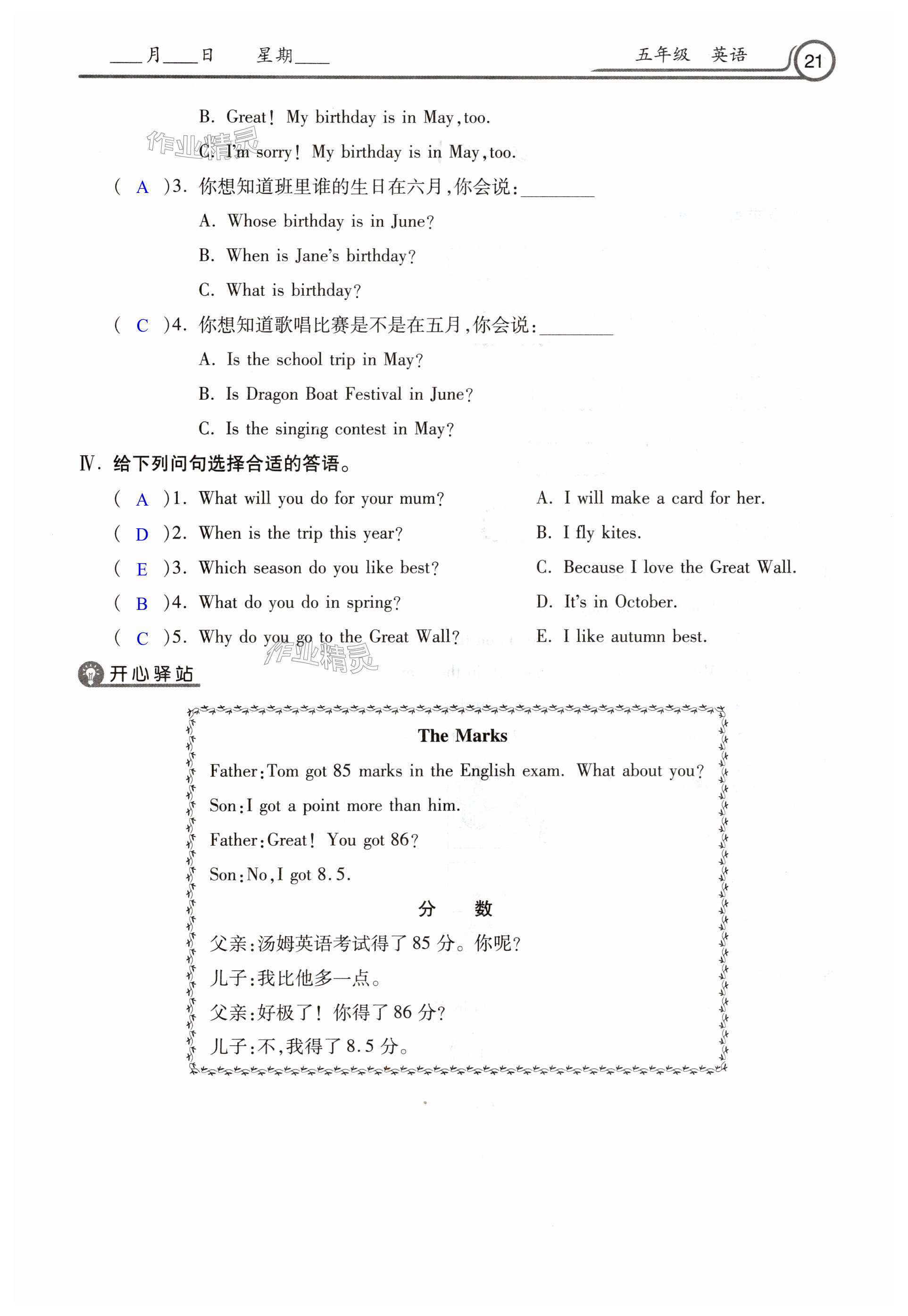 注:目前有些书本章节名称可能整理的还不是很完善,但都是按照顺序排列的,请同学们按照顺序仔细查找。练习册 2025年暑假生活河北美术出版社五年级英语 答案主要是用来给同学们做完题方便对答案用的,请勿直接抄袭。