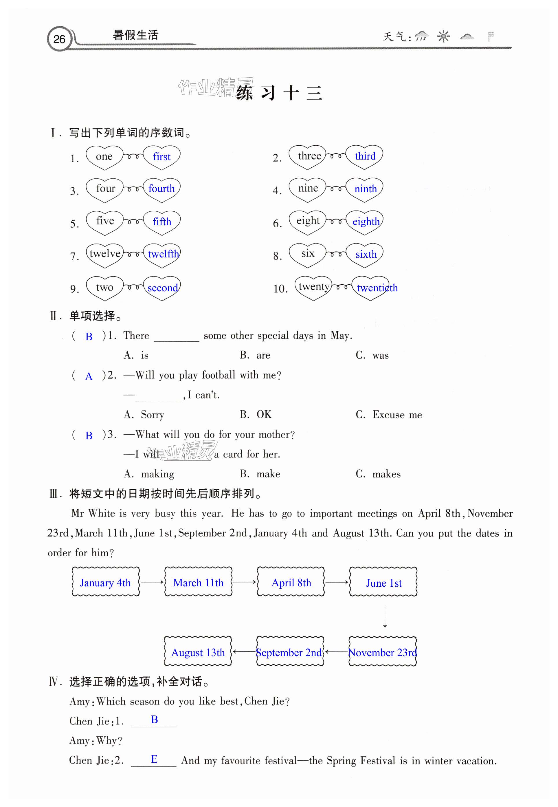 注:目前有些书本章节名称可能整理的还不是很完善,但都是按照顺序排列的,请同学们按照顺序仔细查找。练习册 2025年暑假生活河北美术出版社五年级英语 答案主要是用来给同学们做完题方便对答案用的,请勿直接抄袭。