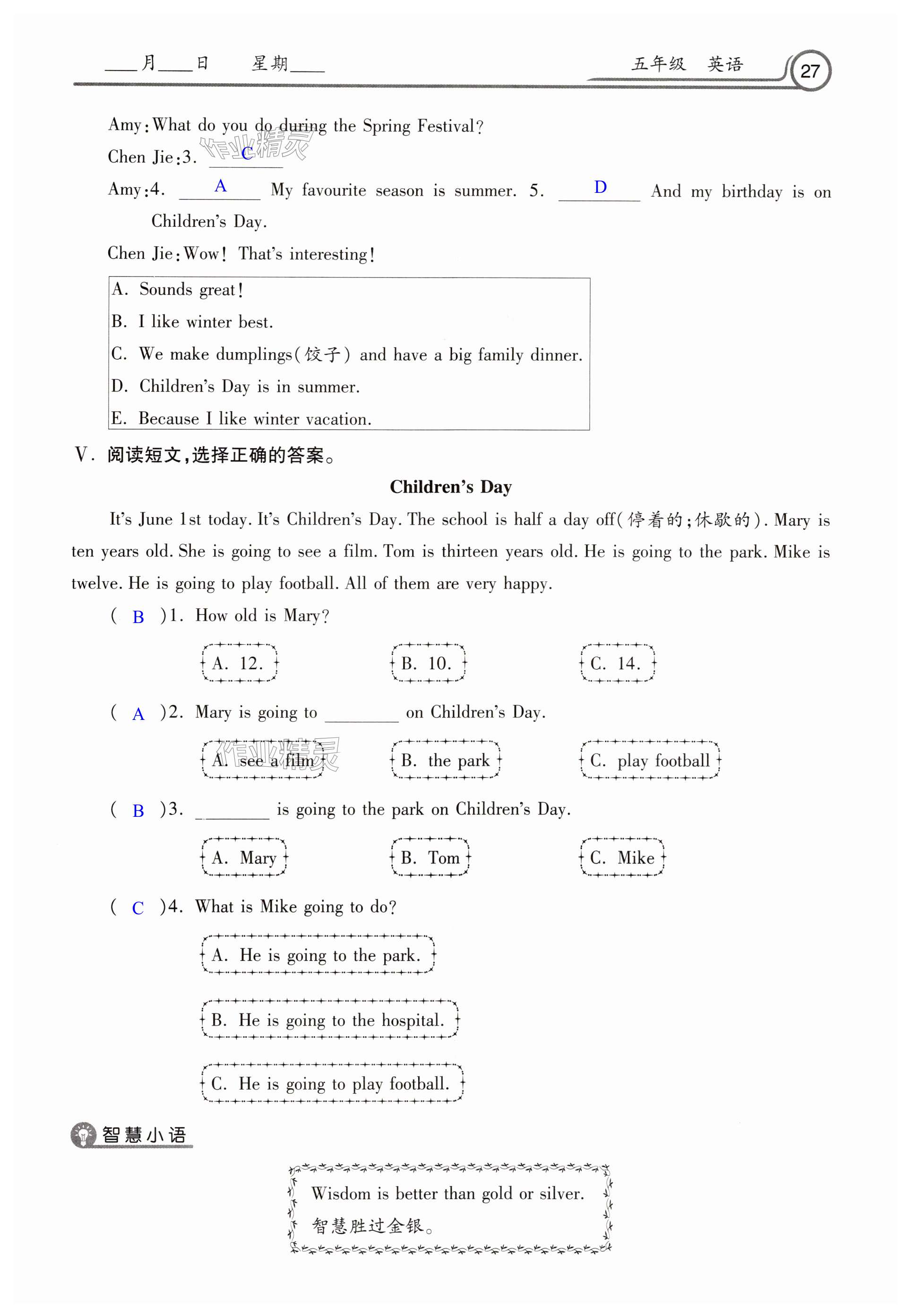 注:目前有些书本章节名称可能整理的还不是很完善,但都是按照顺序排列的,请同学们按照顺序仔细查找。练习册 2025年暑假生活河北美术出版社五年级英语 答案主要是用来给同学们做完题方便对答案用的,请勿直接抄袭。